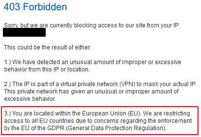 Ook zie ik op Amerikaanse websites deze melding verschijnen: 403 Forbidden